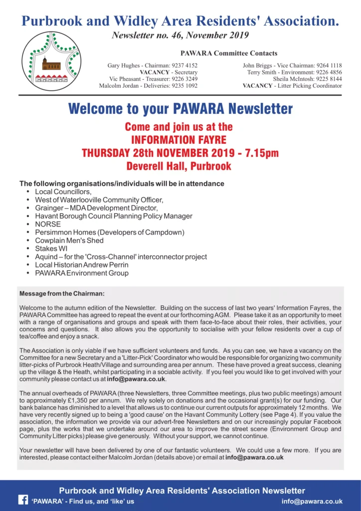 Newsletter – PAWARA https://dev1g.aptanet.net Purbrook & Widley Area Residents' Association Tue, 21 May 2024 21:47:41 +0000 en-US hourly 1 https://wordpress.org/?v=6.5.6 https://dev1g.aptanet.net/wp-content/uploads/2024/05/PAWARA-Header-150x150.png Newsletter – PAWARA https://dev1g.aptanet.net 32 32 Newsletter 54 – May 2024 https://dev1g.aptanet.net/newsletter-54-may-2024/ Wed, 01 May 2024 13:00:00 +0000 https://dev1g.aptanet.net/?p=682