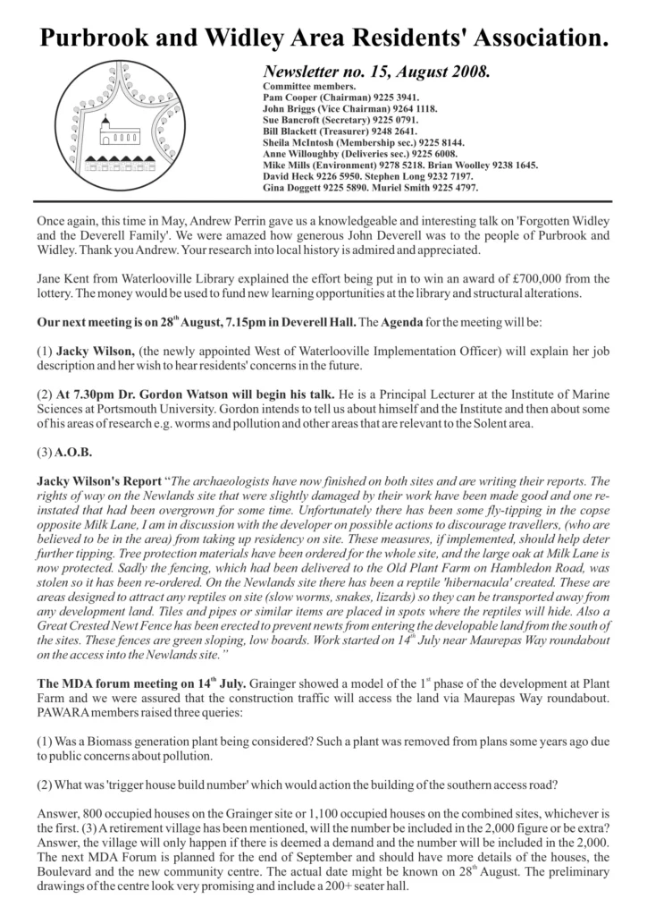 Newsletter 15 – August 2008
