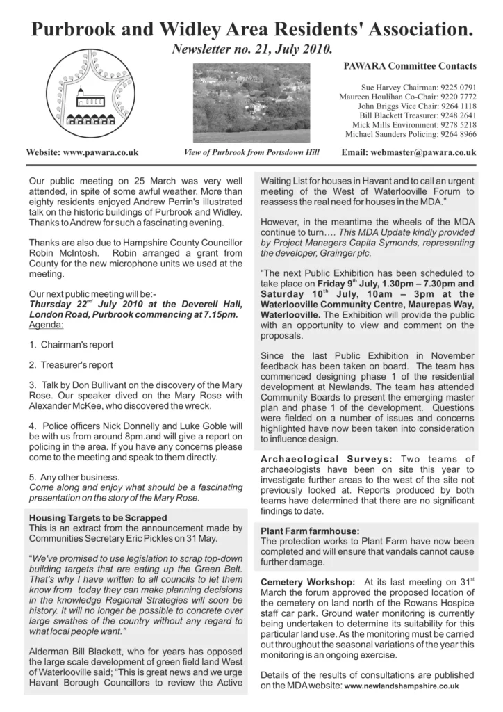 Newsletter 21 – July 2010
