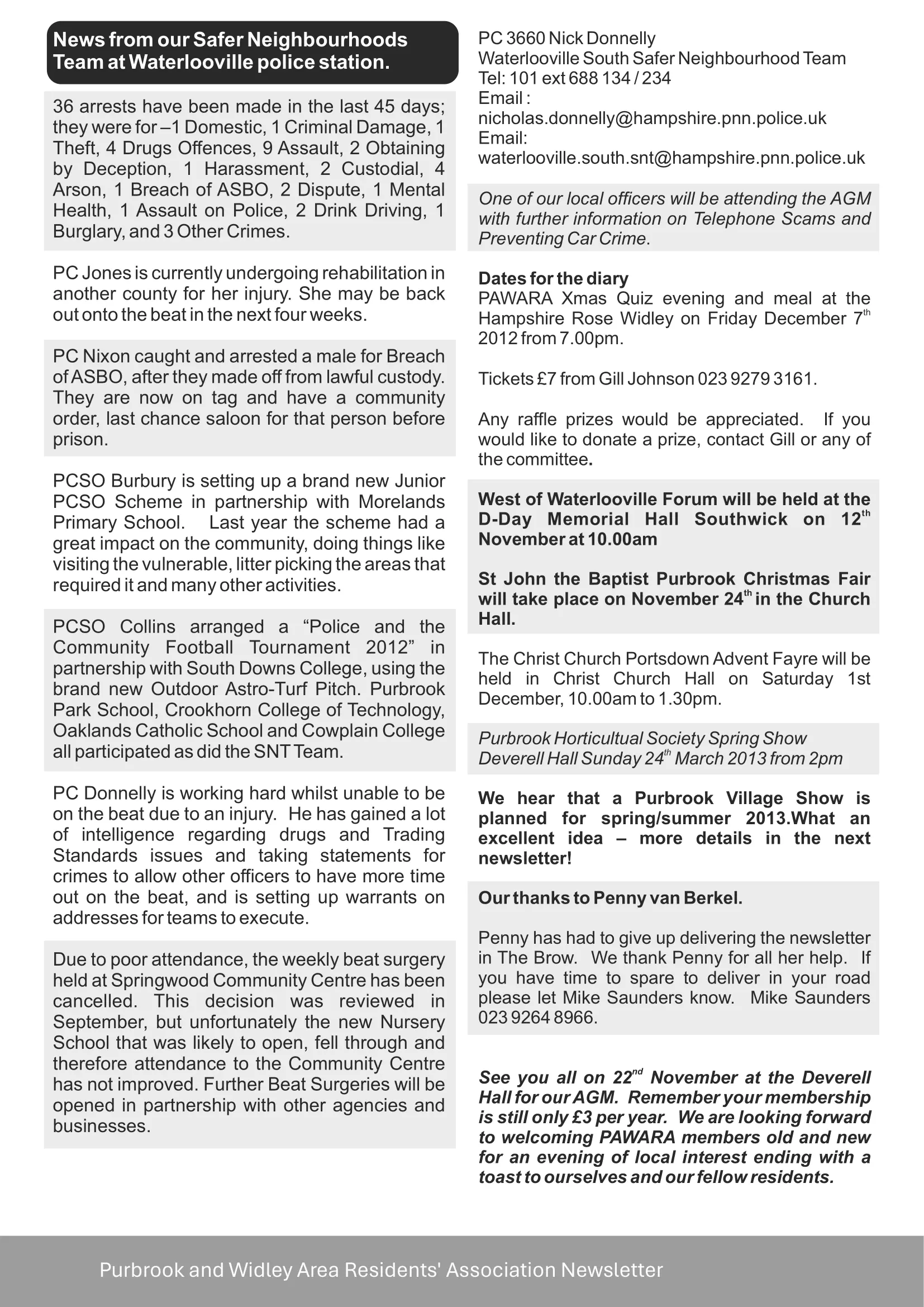 Newsletter 28 – November 2012