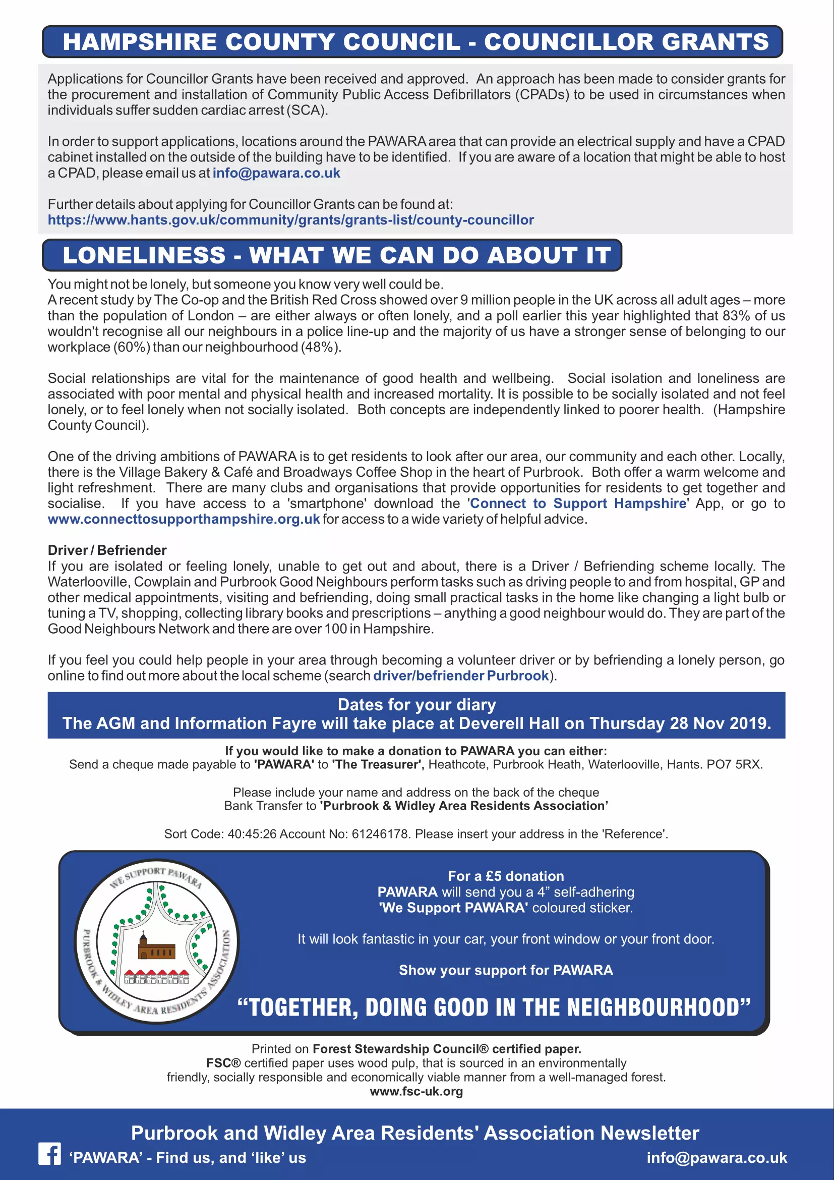 Support PAWARA by playing the Havant Borough Community Lottery – Buy your tickets from our page and we get 50% to support our work in the local community.  Best of Luck!