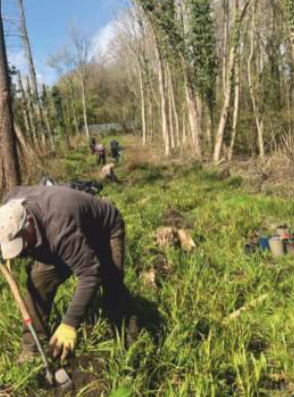 On 13th April, volunteers from PAWARA and Havant Borough Tree Wardens helped the Countryside Service to replant the area with a mixture of native tree species. Over 200 trees were planted, including hazel, elder, hawthorn, blackthorn, buckthorn and crab apple, together with rowan left over from replanting the hedges in Havant Cemetery. HBTW took the opportunity to find a home for their growing collection of oak trees and a Purbrook resident donated four sweet chestnuts and an ash grown in pots.